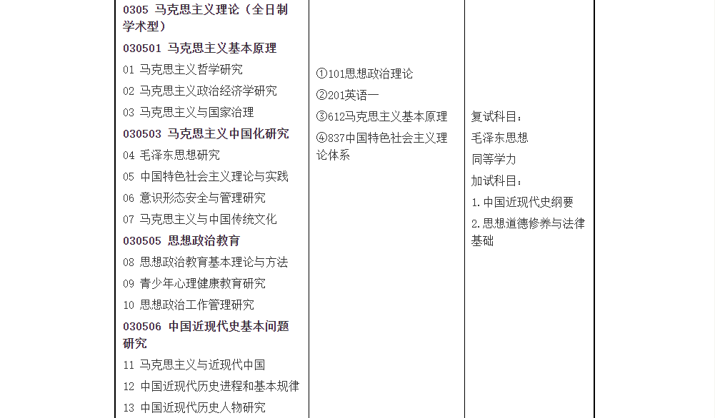 武汉科技大学马克思主义学院2019年硕士研究生招生专业目录