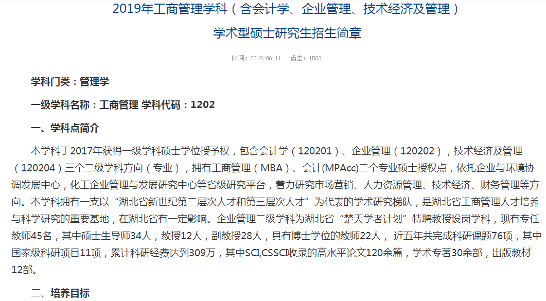 武汉工程大学管理学院2019年工商管理学科(含会计学、企业管理、技术经济及管理)学术型硕士研究生招生简章