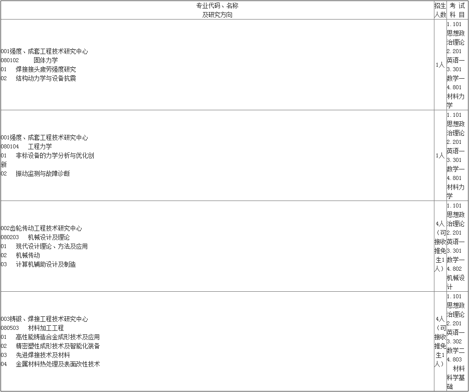 郑州机械研究所2021年硕士研究生招生专业目录