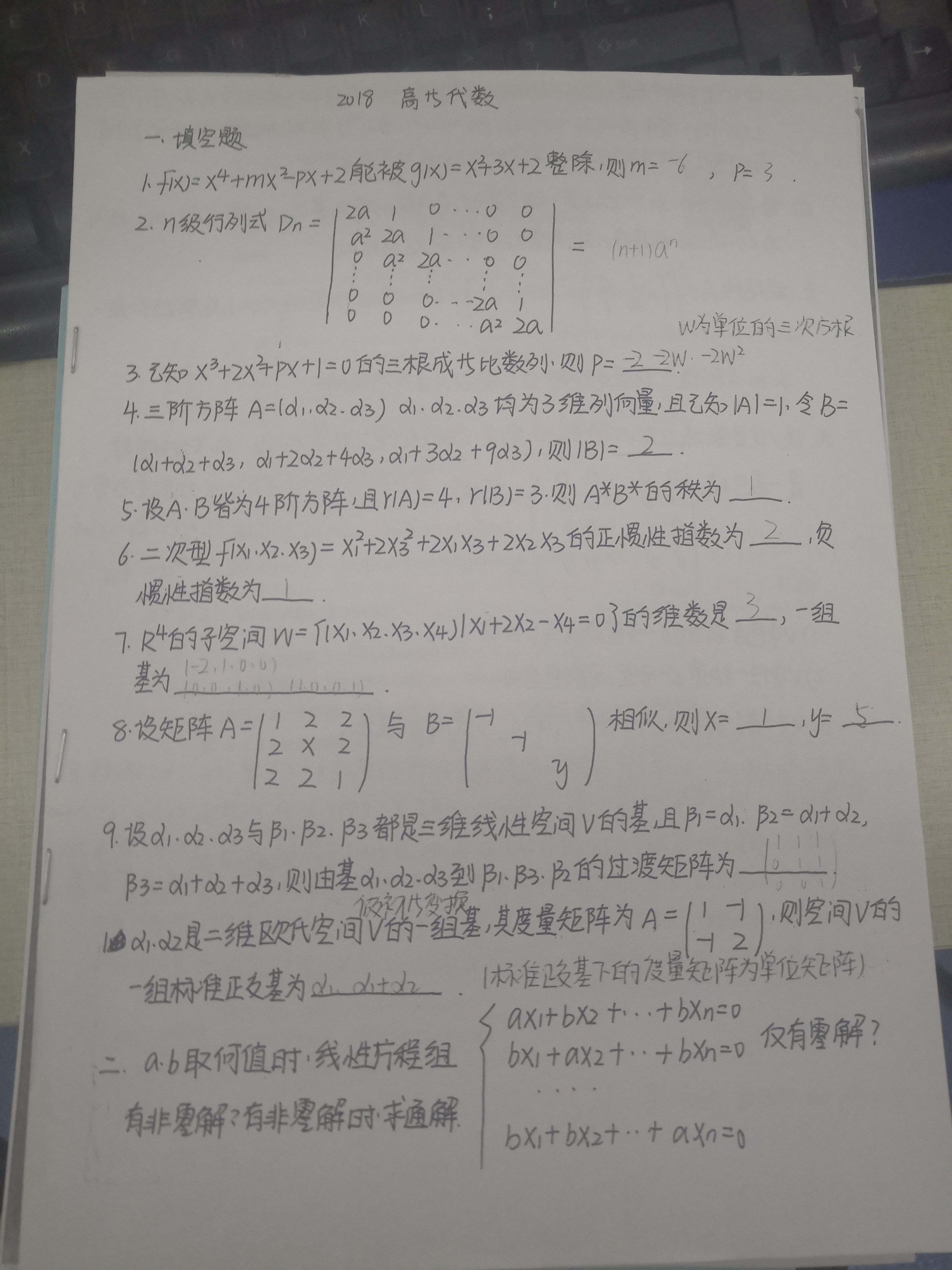 中国海洋大学2018年856高等代数真题